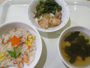多肥下町園では、給食にもひな祭りメニューを取り入れてお祝いしたのでご紹介します。