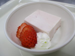 ちなみにおやつはいちごをたっぷり使った可愛いピンク色のいちごムースでした♡