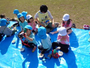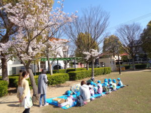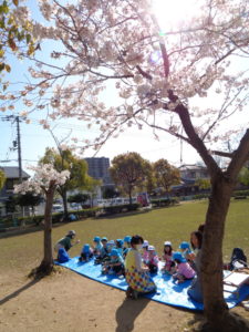 にじぐみさんと、おやつのおにぎりを持ってお花見に行きました(*^^*)