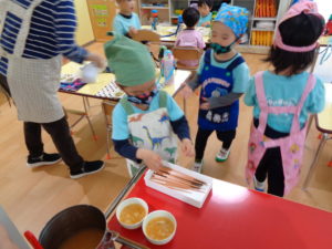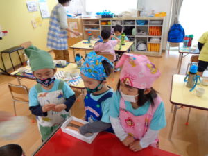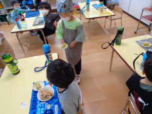 4月になって、にじぐみ4.5歳児さんは、配膳当番が始まりました!