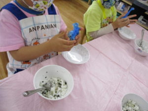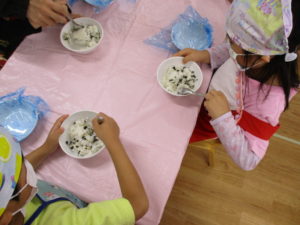 お米のお話の後は、お待ちかねの、おにぎり作りです。
