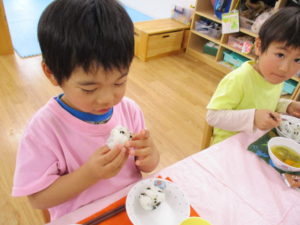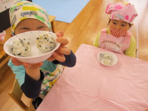 先週、多肥下町園のぞう組さんはおにぎり作りをしました🍙