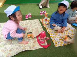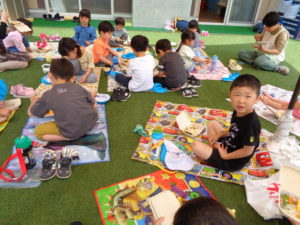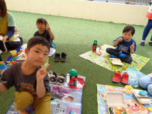 今日をとても楽しみにしてくれていて、園庭でレジャーシートを敷いて待っていてくれました(^^♪