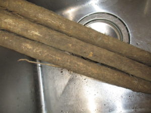 ごぼうに付いた土をよく洗い流します。