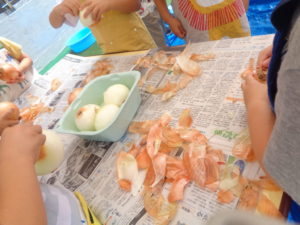 中にはピーラーを使ってむく野菜もありましたが最後まで丁寧に上手に皮むきができました❤
