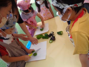 怖がる様子もなくみんな真剣に先生の話をきいて一生懸命野菜を切っていました☺