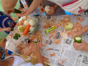 みんなで協力して一つの夏野菜カレーを青空の下で作ります!!