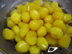 栗の甘露煮のシロップを使う場合は砂糖の量を加減してください。シロップを使用するとしっとりした食感に仕上がります。