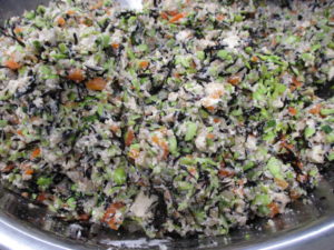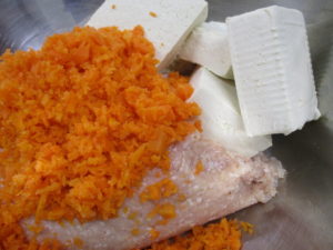 ③鶏ひき肉と①、②、残りの材料を入れ、よく捏ねます。