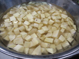 りんごはいちょう切りにしておく。
