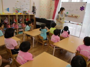 多肥下町園のらいおん組さんで、食事マナーの食育をしました。