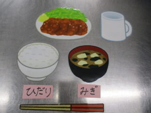 ごはんは右かな?、左かな?とイラストを見ながら位置を確認し、配置していきました。
