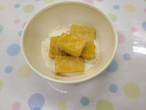 今日は、保育園おやつの、『かぼちゃもち』についてご紹介します(^^)