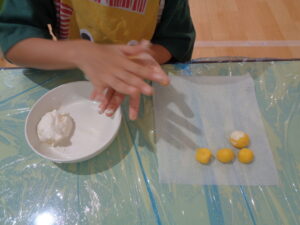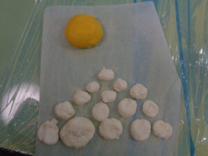 好きな大きさの生地をとって優しく掌でコロコロ転がしてみます♪
