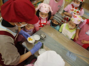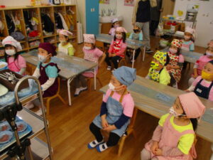 クッキングも4回目、先生のお話もきちんと聞けていますね。