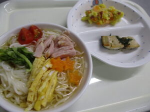 天の川に見立てたトッピングと星型にんじんが可愛い涼し気なそうめんは、今日のような暑さでも食べやすく、みんなスルスルとよく食べてくれました。