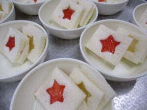 おやつは、いちごとりんごの星形ジャムサンドでした☆
