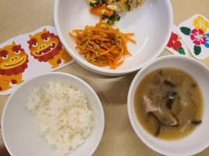 今日の給食は、沖縄メニュー🎵