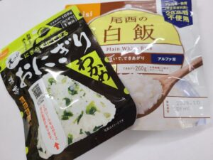 レトルトのスープや、水やお湯を入れると食べられるご飯やおにぎり。