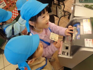 最後にお金を持ってレジに行き自動精算機も体験です!