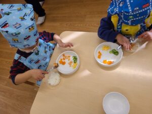 ご飯を食べるとき、この料理には何が入っているかな?と興味を持って食べてくれると嬉しいです🍚