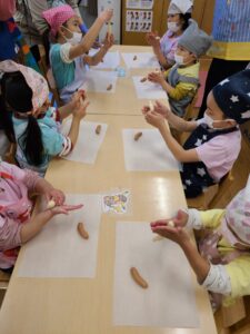 そら組さんは好きな形のパンと、ぐるぐるウインナーパンに挑戦しました😊