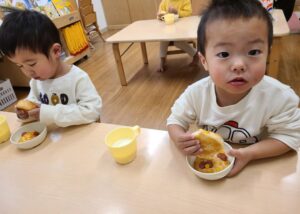 お昼寝中、パンの焼きあがるいい匂いが園内に広がります🍞💛