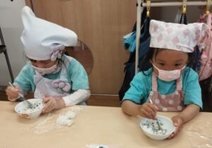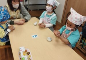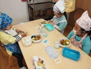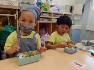 完成したお弁当は園庭で。。。と思ったら雨☔が。。。(´;ω;`)