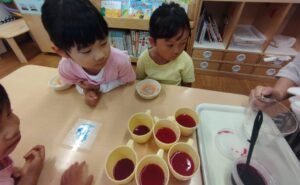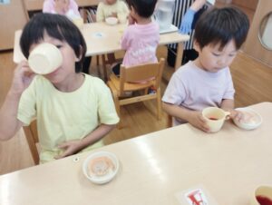 お昼寝から起きると、『しそジュースは!?』と、待ちきれない子どもたち🤗