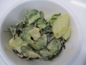 じゃがいもの塩昆布マヨ和えは、茹でたじゃがいもときゅうりに、塩昆布を入れ、マヨネーズと和えたサラダです!簡単にできる副菜なので、ぜひ作ってみてください♪