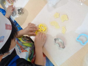 にじ組さんは、おうちから自分の好きな型を持ってきてクッキーの型抜きを行いました!