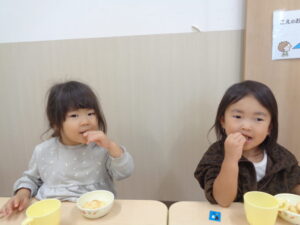 年中さんが上手にお手本をしてくれてふたば組さんの初めてのクッキングはとっても順調に進み