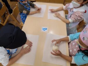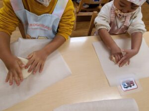 粘土とはまた違って、生地に弾力があるので難しかったようですが、みんな上手に作ることができました😍