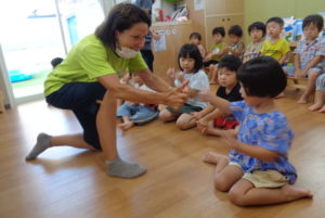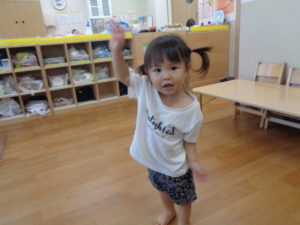 英語の始まりには、挨拶の歌を歌うのですが上手に手を動かしているお友だちがいましたよ👋