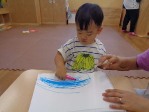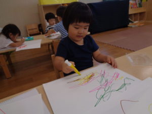 ペンを横にダイナミックに動かしたり、一本線を描いたりとみんなお絵描きが大好きです。