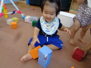 室内遊びでは、ブロックを積み上げてたり、崩したりを先生と一緒に楽しみました✨💖