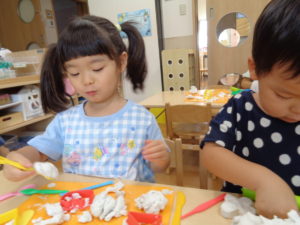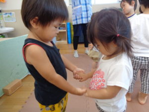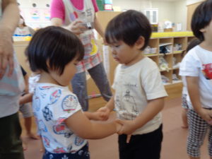 みかん組さんとふたば組さんは、ふれあい遊びで、