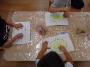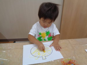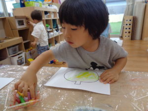 お絵描きや色塗りを集中して楽しんでいましたよ。