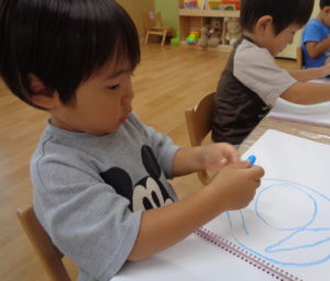 お絵描きするよ~と言うと、自分のロッカーから自分のお絵描き帳を取ってきて、楽しんでいます♪