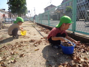気持ちの良い秋晴れの中、今日も元気に登園してきてくれました。