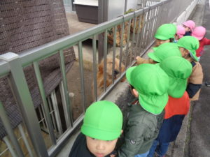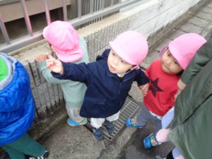午前中の雨が上がっている間に、もも組とふたば組は散歩に行きましたよ♪