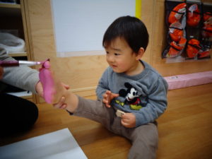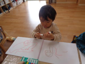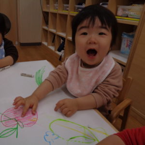 園に帰ってきた後は、もも組はお絵描きをしましたよ。