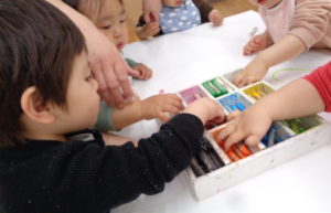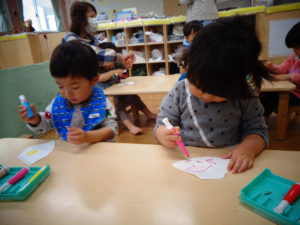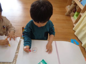 みんなお絵描きが大好き。保育者が準備をしている時から目を輝かせていました✨