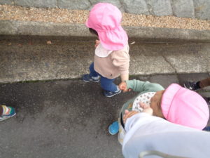 今日、お散歩デビューのお友達もいました!しっかり手を握って歩いていますね!