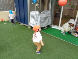 お部屋で活動したり、雨があがると園庭に出たりしてあそびましたよ(^o^)