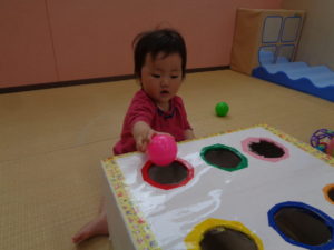 ボールをポンと丸い穴に入れたり、