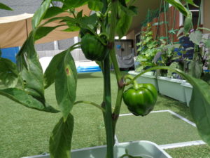園庭のプランターに植えた野菜がすくすくと育ち、
