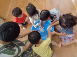 みんなで過ごすお部屋を拭き掃除して、ぞうきんをキレイにしました!