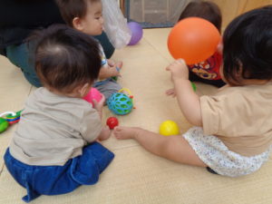 保育者は風船が割れてしまわないか、ハラハラドキドキしながら見守っていましたよ笑