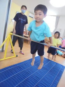 ↓背筋ピーン!“つばめポーズ”カッコイイ!しっかりと手で鉄棒を握れていますね!